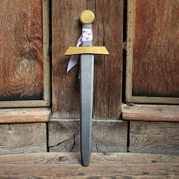 Made from sturdy beech wood with a painted silver blade and a handle wrapped in 100% braided cotton, this sword is made using traditional methods in the forest from which the wood was cut. The blade is stained silver and the handle gold. A perfect fit for little (or bigger... ahem) hands.