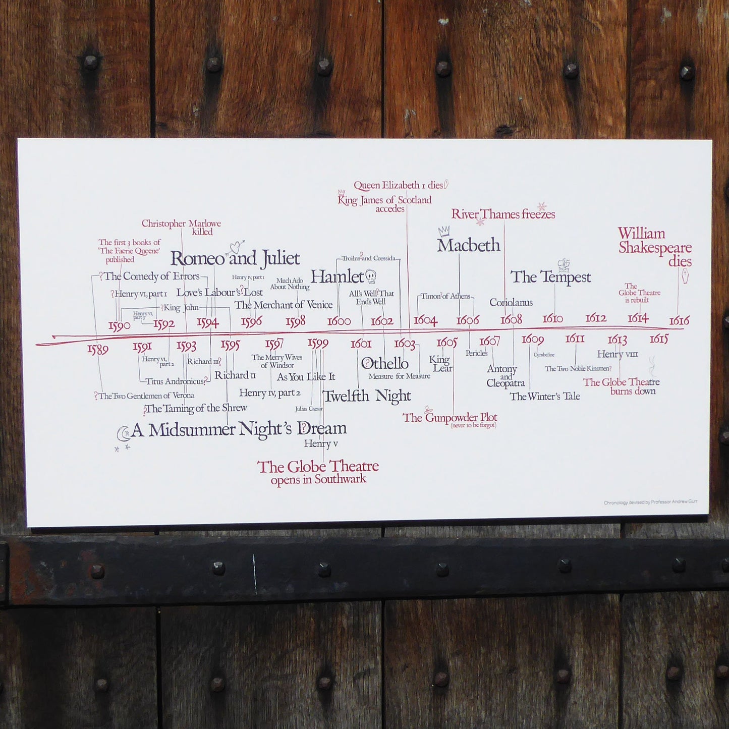 This timeline records the dates that Shakespeare is thought to have written his plays, combined with some of the important historical events between 1589 and Shakespeare's death in 1616.