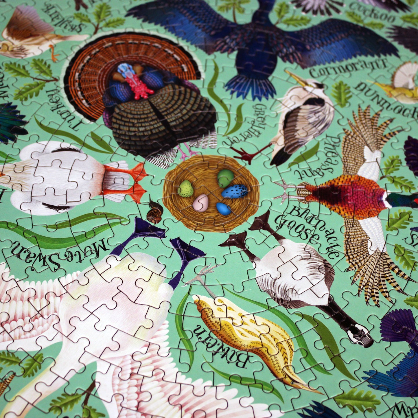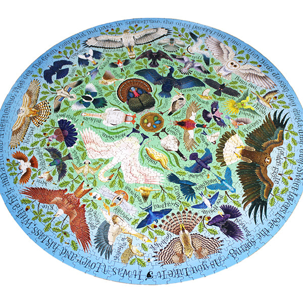 Piece together the beautiful birds of The Bard with this 1000-piece circular puzzle. Around the edge runs an evocative quotation from As You Like It: inside, accurate depictions of more than fifty birds, all mentioned by Shakespeare in his plays. Species include: blackbird, bunting, chough, cock, cormorant, crow, cuckoo, daw, dive-dapper, dove, duck, eagle, falcon, finch, fowl, goose, guinea hen, hedge sparrow, heron, jay, kestrel, kingfisher, kite, lapwing, lark, loon, magpie, mallard, martin (martlet) nightingale, osprey, ostrich, owl, paraquito, parrot, partridge, peacock, pelican, pheasant, phoenix, pigeon, popinjay, quail, raven, rook, sea gull, snipe, sparrow, starling, swallow, swan, thrush, turkey, vulture, woodcock, and wren.